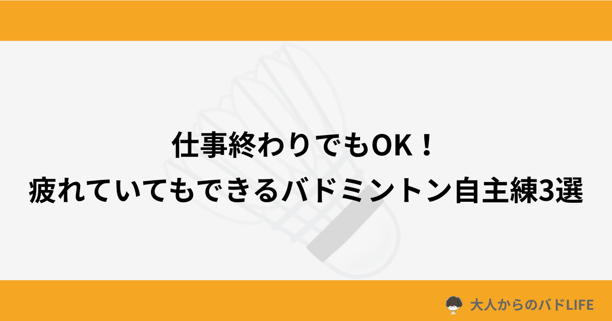 社会人バドプレイヤーなら、一度はこう思ったことがあるはず。そんなときこそ「サクッとできる自主練」が役に立ちます。